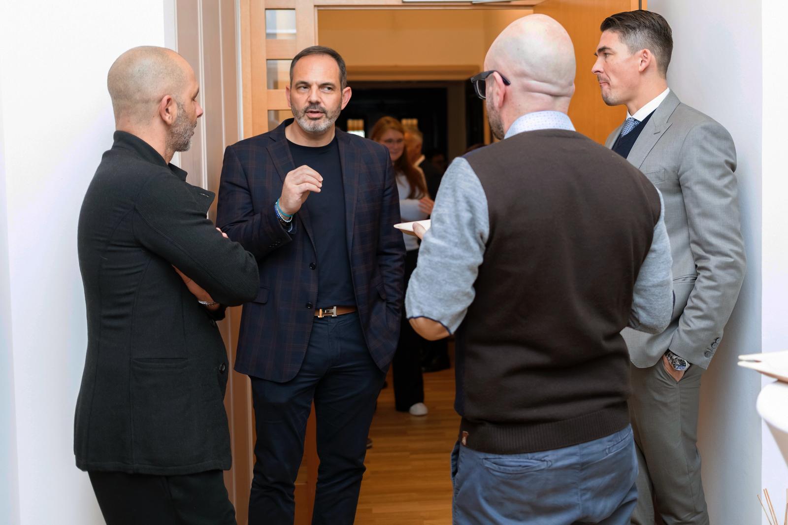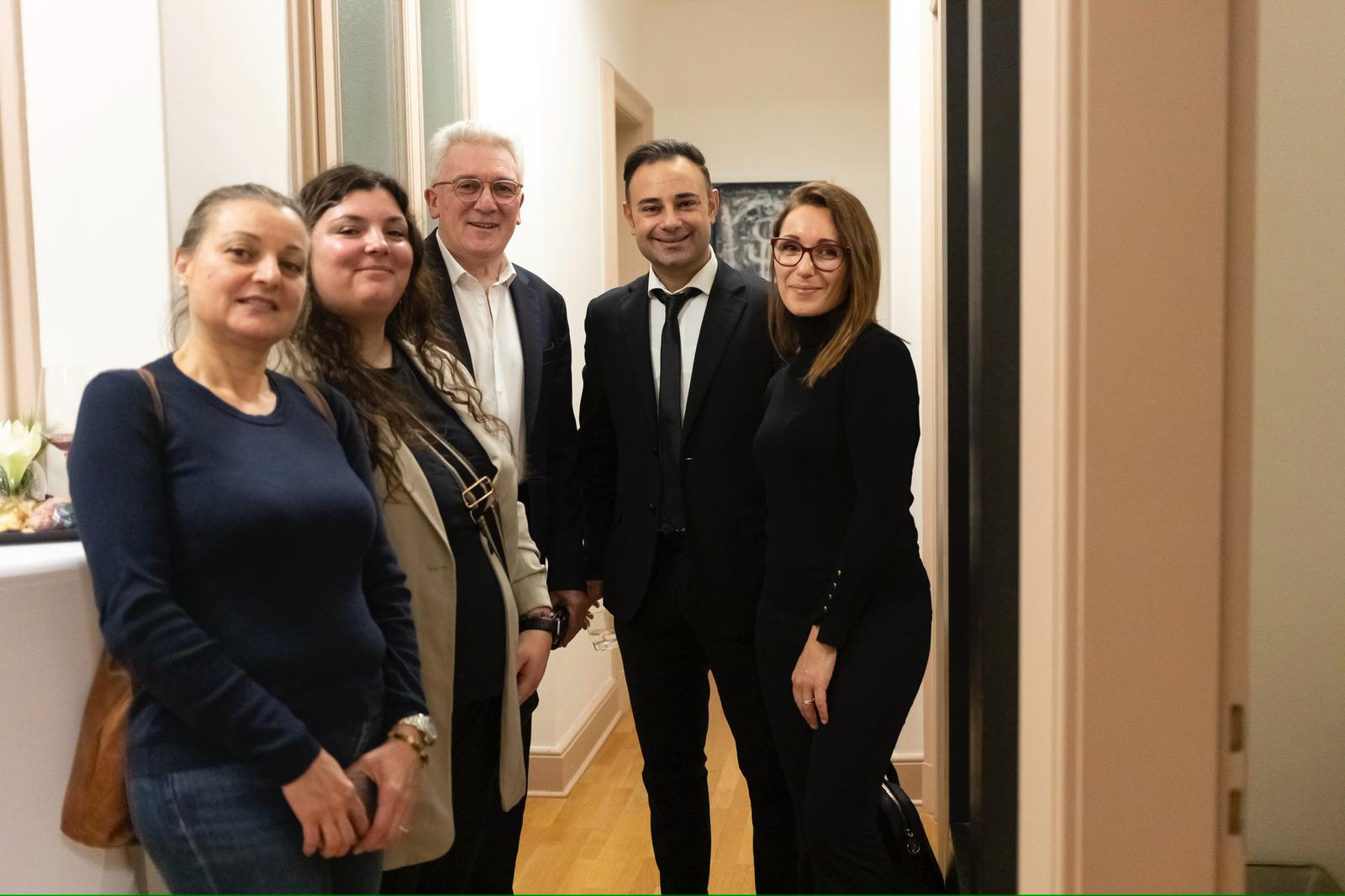 The protagonists of the evening were the vibrant works of Massinissa Askeur, winner of the Golden Lion of Venice 2023 and among the 500 most influential contemporary artists in abstract symbolism. Canvases created specifically for this occasion, which now permanently color the office spaces. The ancestral symbols of Berber culture dialogue with visitors, evoking emotions that words often fail to express. In an era where communication risks losing its authenticity, art brings us back to the essential.